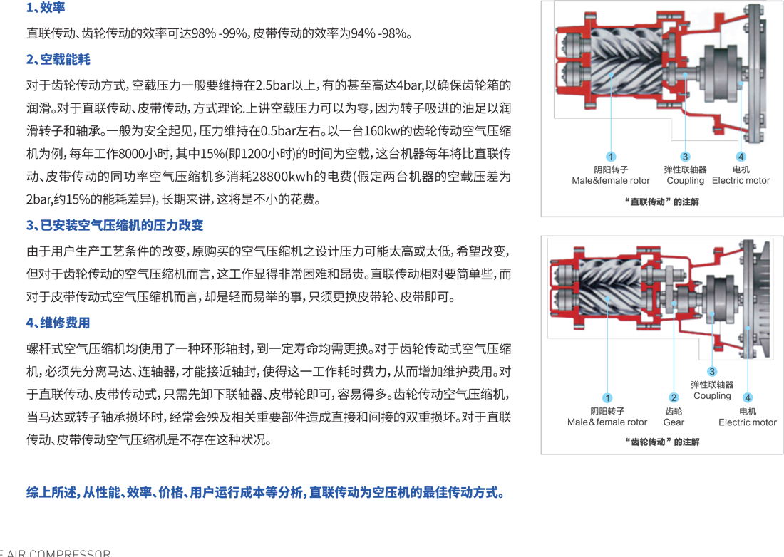 2、结构紧凑、传动效率高,能有效提高空压机的效率,节省能源;